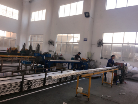 Тук има две производствени основни работилници за части от алуминиеви сплави и ние ги имаме заедно с алуминиево екструдиране на анодизиращото рязане също съдържат линии за обработка на пробиване, той също има автоматична производствена линия за леене на алуминиева матрица, годишният капацитет е около 3000t/година.
